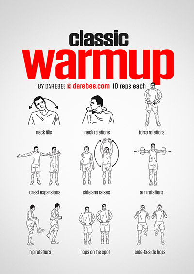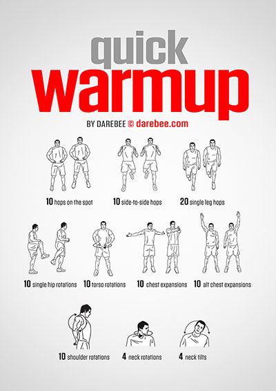 To stay safe and get the most out of your workout you must always include a pre-workout warm-up before you begin
